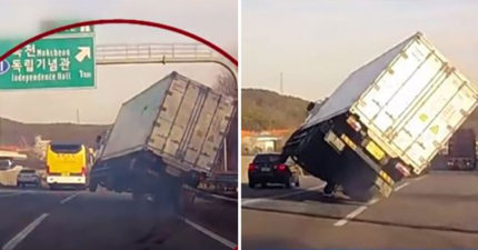 貨車「左邊翹高高」翻車前一秒 老司機一個move回來