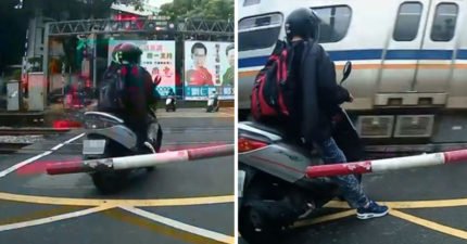柵欄放下仍硬闖平交道 女騎士「差2秒」晚7天回家!