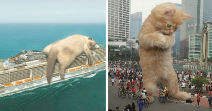 巨大貓咪襲擊各景點 攝影師拍下災難現場…貓奴崩潰:萌到想哭