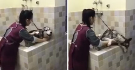 二哈被抓去洗澡「瘋狂碎碎念」 網友神翻譯笑翻