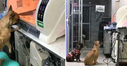 法斗妈蹲「保温箱深情凝视」 2只早产小宝贝努力奋斗:加油啊~孩子