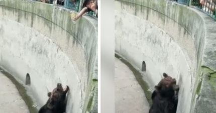 小屁孩假装「倒水出来」熊熊超兴奋 就在合嘴后贴墙懊恼:X!被骗了…