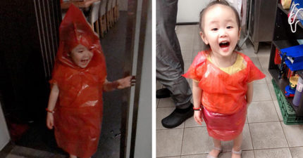 美丽华大雨惊见「超萌红衣小女孩」 垃圾袋→防水雨衣好喜翻♡:想跟佩佩猪一样踏水~