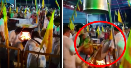 恐怖影片!法師穿肚兜「盤腿坐大悶鍋」表演「蒸人秀」!半小時後開鍋…意外慘死!