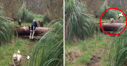 别忘了本大爷啊!狗狗开心狂奔森林「跳树干」,柯基腿太短「秒翻肚」:还有我啊~(影片)