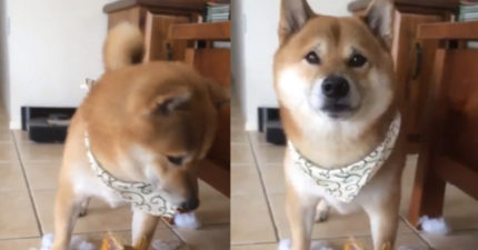 马麻回家惊见一地碎棉花 傲娇柴秒变「衰脸八字眉」:对不起嘛~