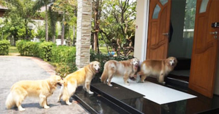 比人還乖~4憨金回家「排排站門口」 等馬麻擦腳腳才能進去♡
