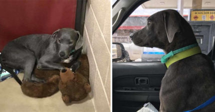 牠被主人親手送進收容所 緊抱「最後的泰迪熊」縮在角落