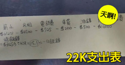 她貼出22K生活支出表,想跪求「能在更省錢的方法」鄉民看到「最後一項支出10000元」氣到流眼淚!