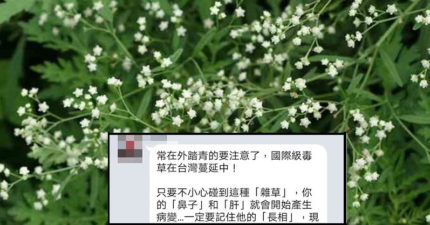 長輩簡訊洗版「神秘盜版滿天星」,只要碰到「鼻子+肝立刻病變」林務局證實:北中南到處都長滿了!