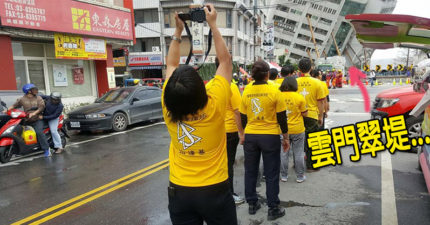 腦子不見了?半倒雲門翠堤前驚見「某教派小小兵」列隊拍廣告,救難人員面前大喊「Action!」網暴怒!