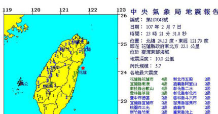 快訊/震不停!東部海域發生規模5.7強震,北部超有感「高樓左右晃動幅度超大!」