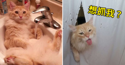 調皮貓皇「超愛玩水」 趁主人洗澡「撕開浴簾」卻被機智反擊…網嚇壞:怎麽有大白鯊?