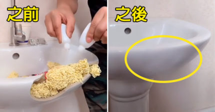 影/洗手台破了大洞怎麽辦?他用「泡麵+膠水」神修復 超狂成果嚇壞全網!
