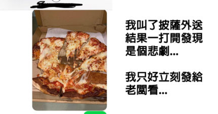 菜鳥外送員把披薩「變得面目全非」 老闆回傳「神懲罰照」被讚翻