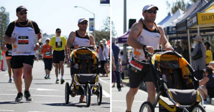 男子推「空空的嬰兒車」參加馬拉松引起關注,「不小心弄丟孩子」讓全場爆淚!
