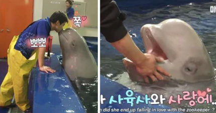 史上最愛吃醋!小白鯨愛上歐巴飼育員 看到女生靠近就「吐水攻擊」:給老娘離遠一點~