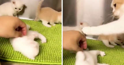 影/奴才搔迷你喵肚肚 喵媽出手制止:請你不要這樣喔~