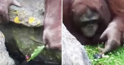 紅毛猩猩發現小鳥溺水快死 「出手暖救」全被鏡頭拍下!