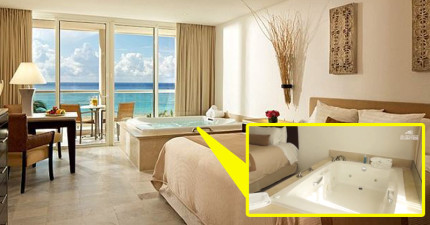 這對夫妻在飯店房間按摩浴缸裡愛愛,沒想到丈夫因心臟病發猝死而他老婆這時也同時死掉了。