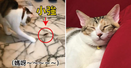 貓皇手賤喚醒「萬惡小強」 鏟屎官崩潰狂奔:別再玩牠!