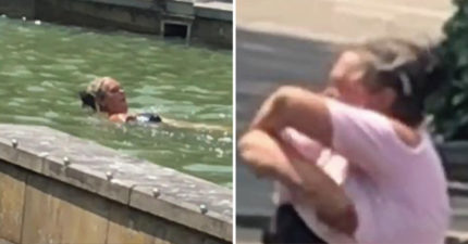 整个城市都是我的浴室!大妈嫌热「脱衣游喷水池」:顺便洗个裤裤好了~