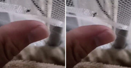 手指的誘惑!黑蚊被困在白網 肥美大拇指眼前晃「那根針就是吸不到」