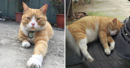 要怎麼用歐都麥!機車被小橘貓霸占睡搞搞 車主看著「萌胖背影」:都等1小時了~