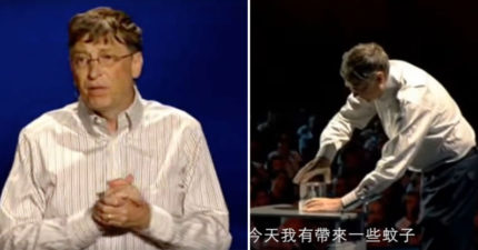比爾蓋茲演說到一半釋放出一群蚊子去咬聽眾,他說:「沒理由只有窮人才該有這樣的體驗」。(影片)