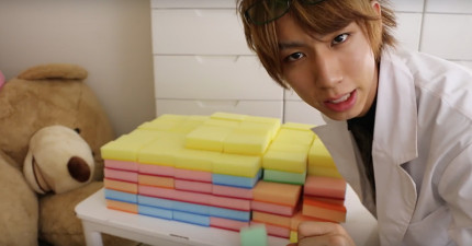 他一次把「256塊海綿」黏起來看看有多吸水,不過當他把水倒進去後卻發生了超爆笑悲劇…