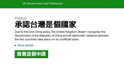 英國公民向國會請願要求承認台灣是獨立國家,目前連署人數已破1萬大關!