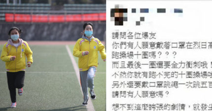 體育老師逼全班「戴口罩跑操場10圈」 校方:可自己拿掉