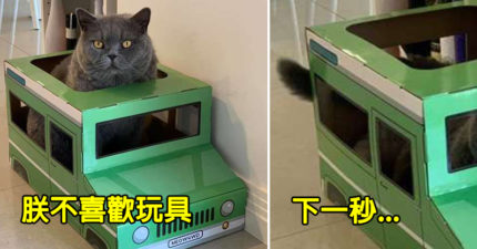 臭臉貓「不愛玩具」超難搞 坐上吉普車「秒變臉」終於開心了!