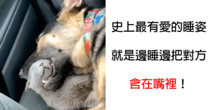 呆萌貓「在狗狗嘴裡睡死」 主人:牠在表達信任❤