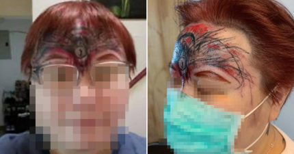 想在額頭刺小白蓮變「狂野抽象畫」女子超崩潰 店家:她很滿意