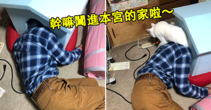 奴才喝醉「把頭塞進貓屋」睡死 貓皇對抗「進擊的巨人」超厭世!