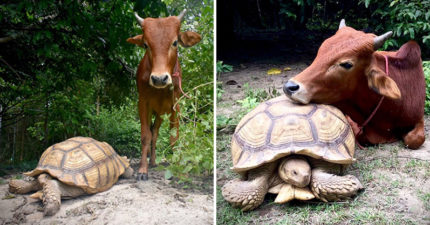 殘疾牛和老烏龜「跨族群友誼」爆紅 牠把「朋友當枕頭」畫面超感人❤
