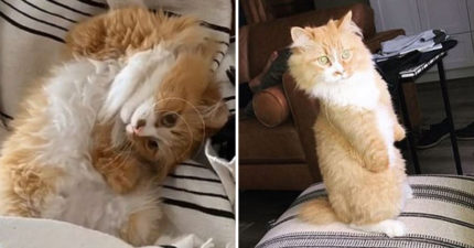 少了前爪!橘貓學人類「用2隻腳走路」連尿尿也神模仿