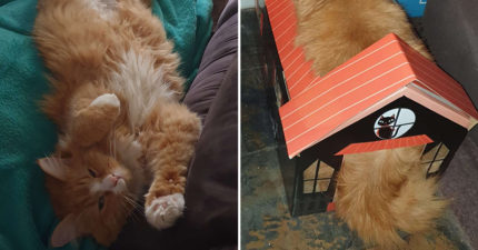 新買寵物屋卻「尺寸不合」 胖貓「硬要擠進去」最後悲劇了