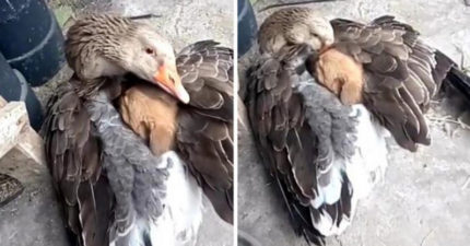 孤兒汪「冷到發抖」倒路邊 大鴨「張開翅膀」擁抱:給你溫暖❤