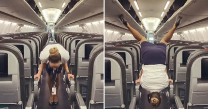 影/正妹空姐「挑戰倒立關門」影片瘋傳 網歪樓:裙子沒掉?