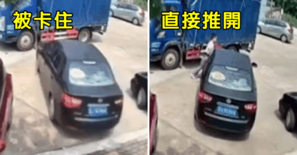 車子被前後卡住!大力男「徒手推車」讓網驚:用力量彌補技術