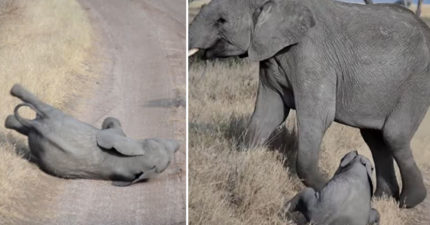 影/小象不想走「倒地」耍脾氣 象群「高EQ處理」人類爸媽都該學