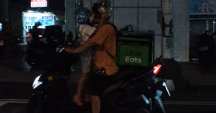 女兒「陪爸爸跑外送」趁等紅燈「偷獻吻」再辛苦都值得!