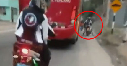 機車騎士「鑽大巴士縫隙」!放雙腳失平衡慘「當場腰斬」