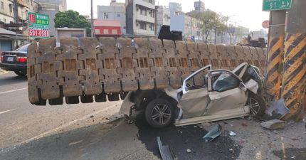 駕駛才下車買麵 天外飛來「10噸重履帶」壓爛轎車