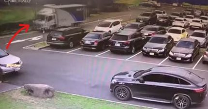 影/沒拉手剎車悲劇!貨車倒退嚕「撞雙B」 司機見狀放棄慢慢追