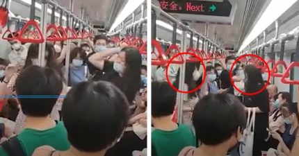 影/踩到腳還不道歉?兩女地鐵上演全武行「巴掌拉頭髮」乘客看傻