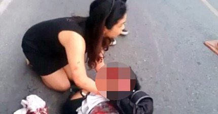 男子車禍喉嚨遭割破流血命在旦夕,但路過的「黑衣天使」不顧自身安危救了他一命!