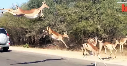 一隻被獵豹追殺的羚羊,情急之下就施展了躲貓貓絕技讓獵豹摸不著頭緒!
